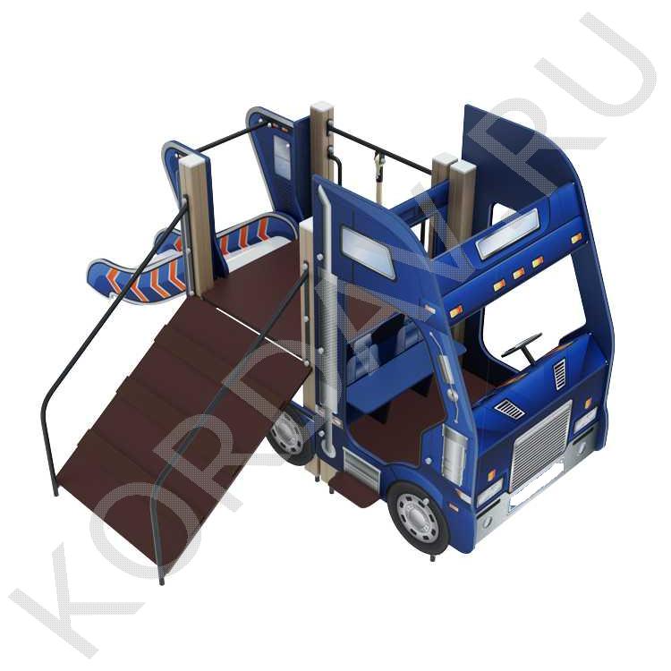 - Конструкция игрового комплекса стилизована под Грузовик, что придает ей привлекательный и интересный вид для детей.