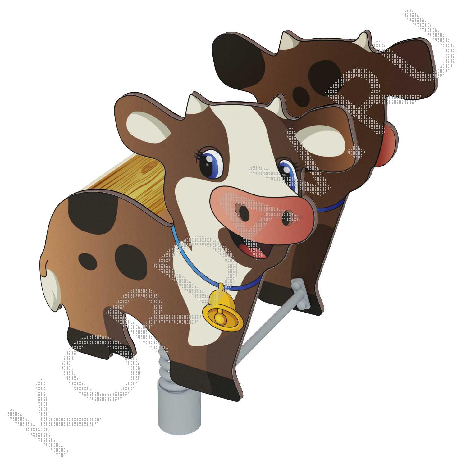 Борта изделия выполнены в виде быка и окрашены соответствующе. Их размер составляет 880х780х18 мм. Лавка с габаритами 540х230х18 мм окрашена в бежевый цвет. Спинка имеет размер 540х230 мм при толщине 18 мм. Также предусмотрены ручки из профилированных труб диаметром 22 мм. Подставка для ног имеет толщину 27 мм. Одним из основных элементов конструкции является пружина. Она изготовлена из металла высокой прочности, и способна выдержать большие механические нагрузки.