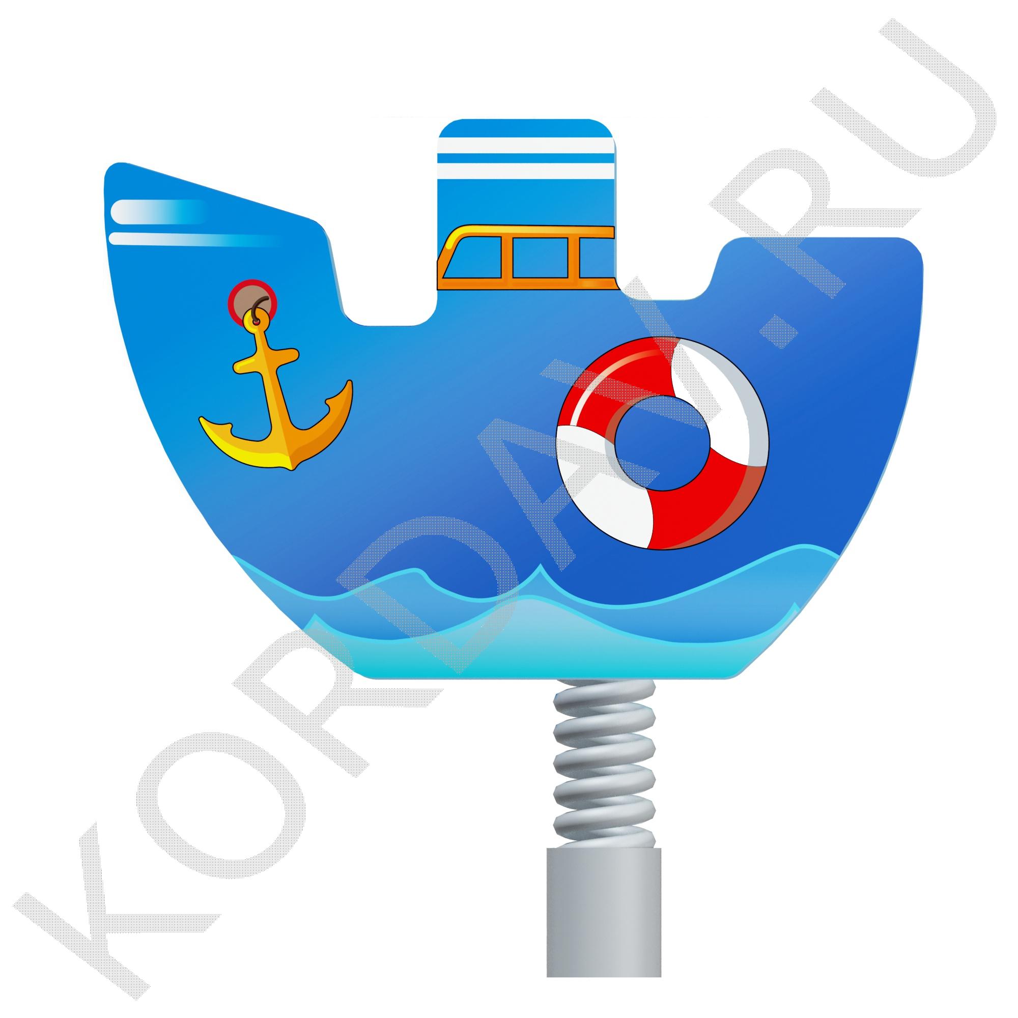 Качалка на пружине Пароход состоит из: Основания, пружины, бортов, лавочки, спинки, перекладины для ног.