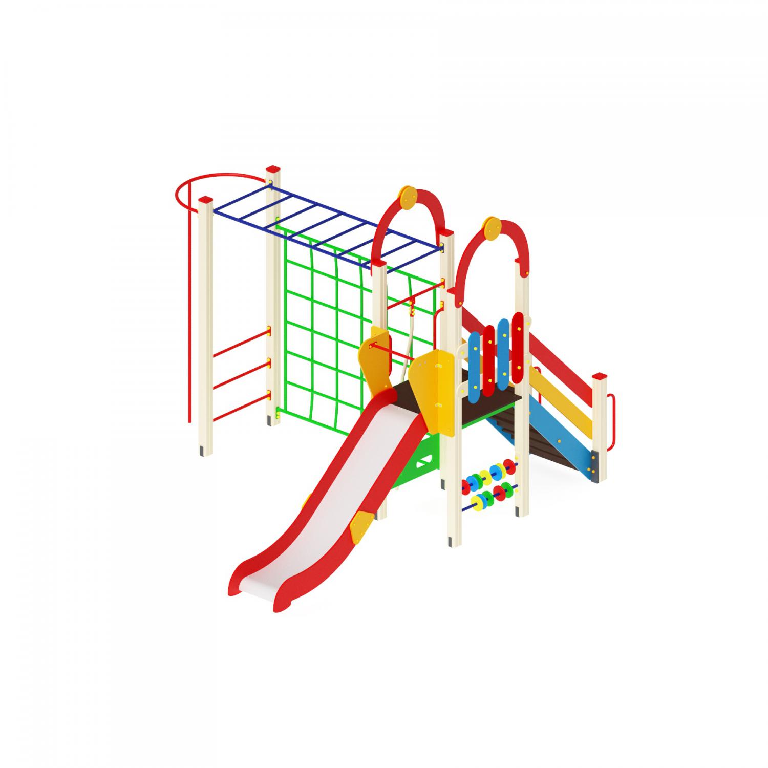 В комплектацию входит: лестница, рукоход, шест, шведская стенка, металлическая лаз-решетка, счёты, скат-горка с поручнем и боковыми бортами