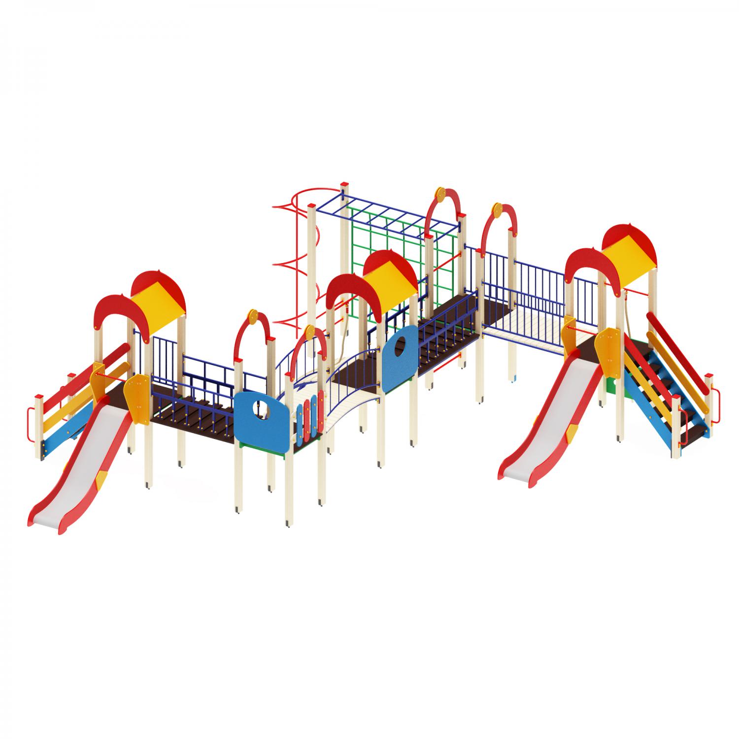 Комплекс с горкой и спиралью соединённый бревном с рукоходом и лазилкой ПДИ 2.12
