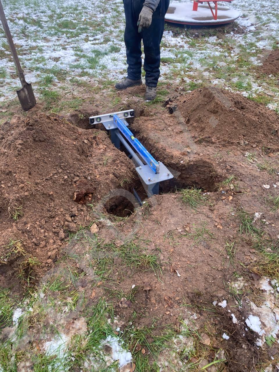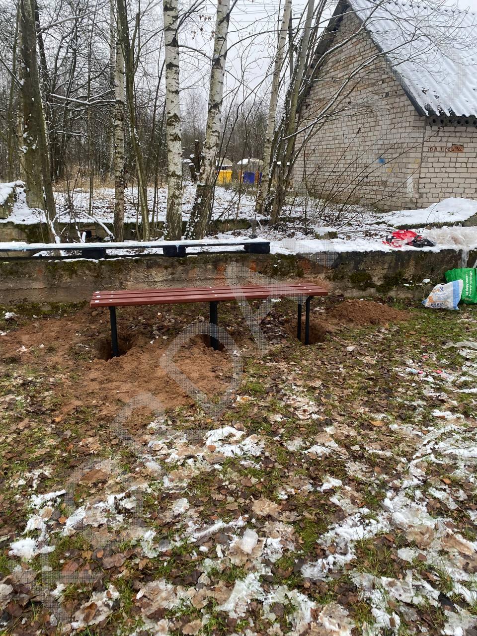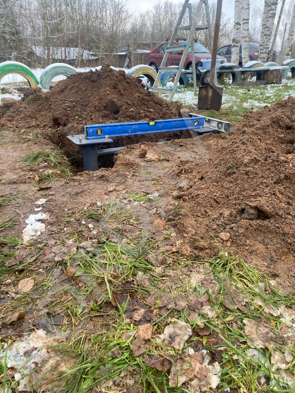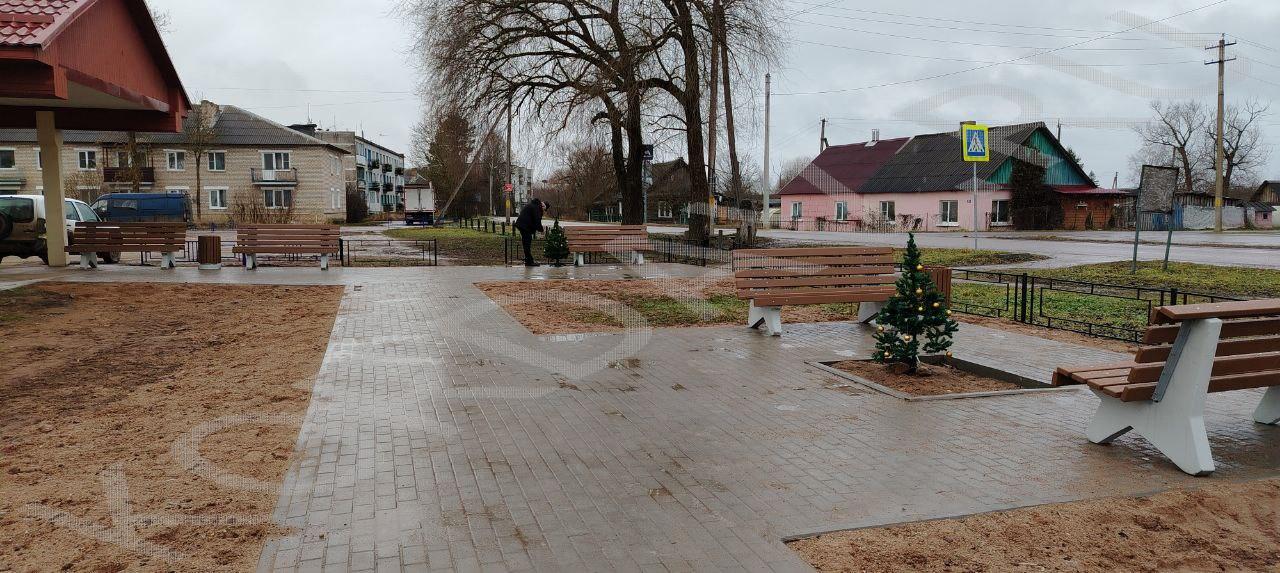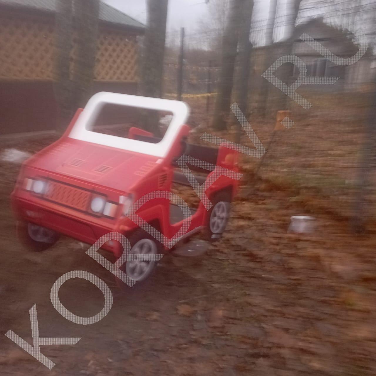 Детская площадка с резиновой плиткой и металлическим ограждением. Использовалось оборудование: